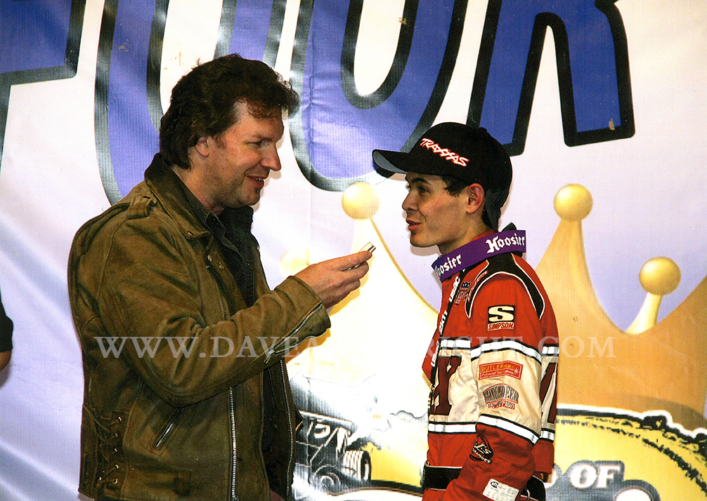 SprintCar and Midget Magazine editor Doug Auld interviews Kyle Larson in 2017. (Doug Auld photo)